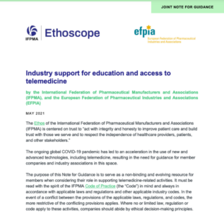 The overall intention of this Note for Guidance is that the cooperation between companies, healthcare professionals (HCPs), and other stakeholders is always based on high ethical standards and clearly aims to benefit patients. Moreover, IFPMA acknowledges and commits to supporting the World Medical Association (WMA) Statement on the Ethics of Telemedicine, with a view to a closer collaboration to develop ethical norms and practice guidelines in this evolving space as appropriate.
